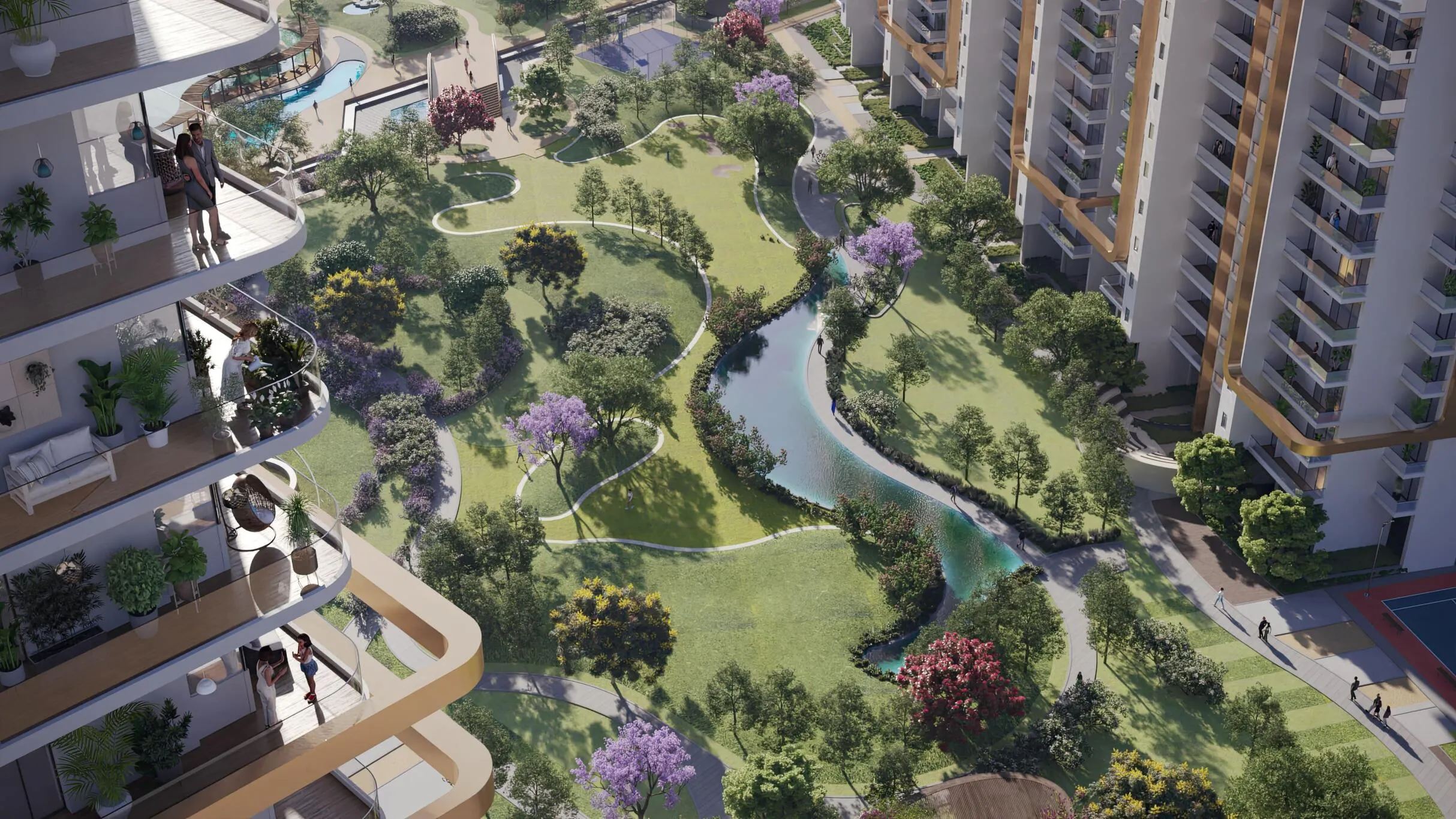 The project offers a range of lifestyle amenities including a clubhouse, swimming pool, fitness center, landscaped greens, and recreational spaces. Designed to support modern living, residents benefit from open areas, leisure zones, and community-focused infrastructure within a large integrated development.