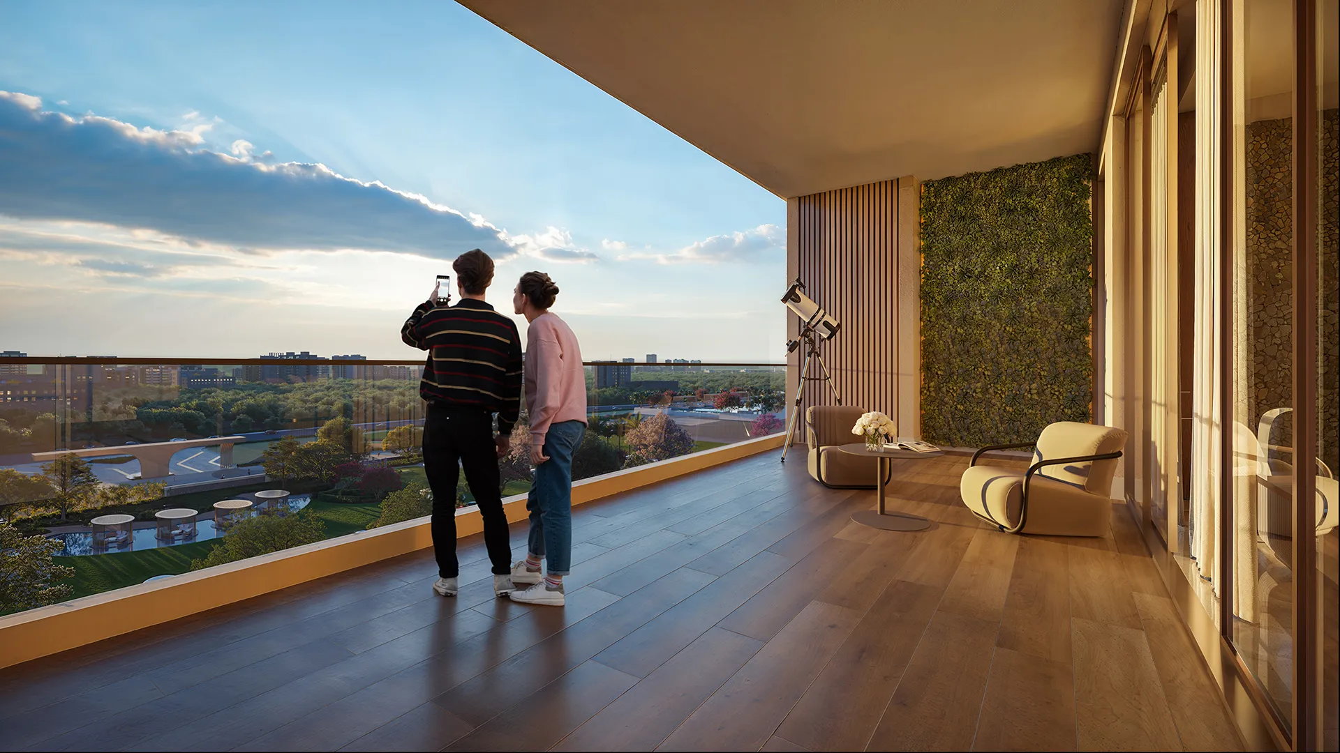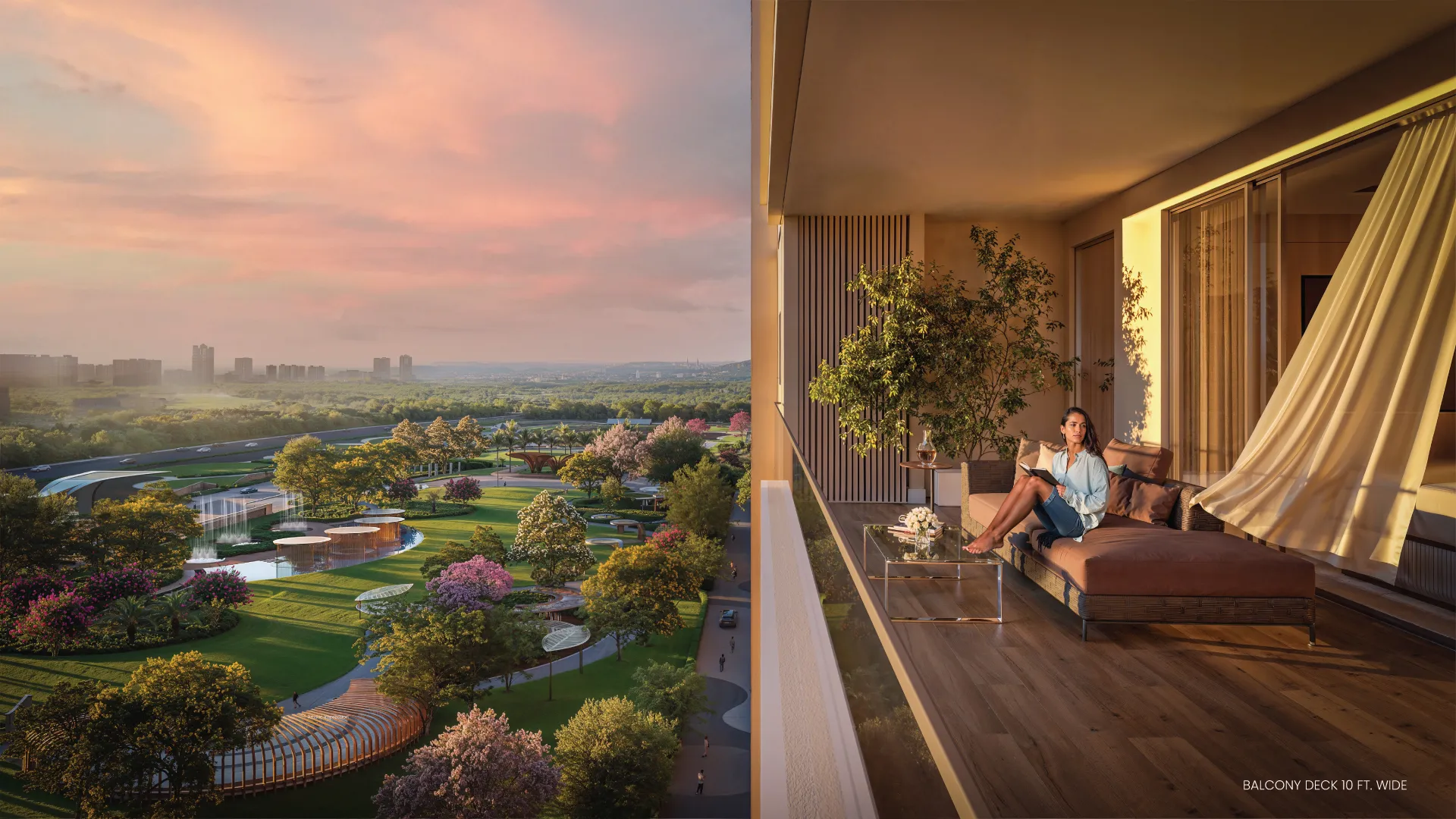 - Spacious 3 & 4 BHK homes with 10-ft wide private balcony decks